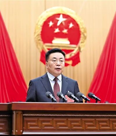 自治区人民政府主席包钢作政府工作报告。 内蒙古日报记者 韩卿立 摄