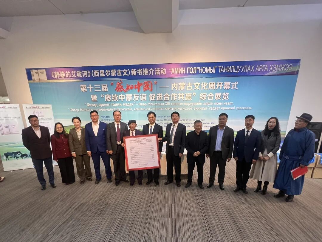 活动邀请蒙古国资深学者进行了阅读分享。内蒙古出版集团内蒙古文化出版社向蒙古国10所学校捐赠《静静的艾敏河》(西里尔蒙古文版)新书500册。