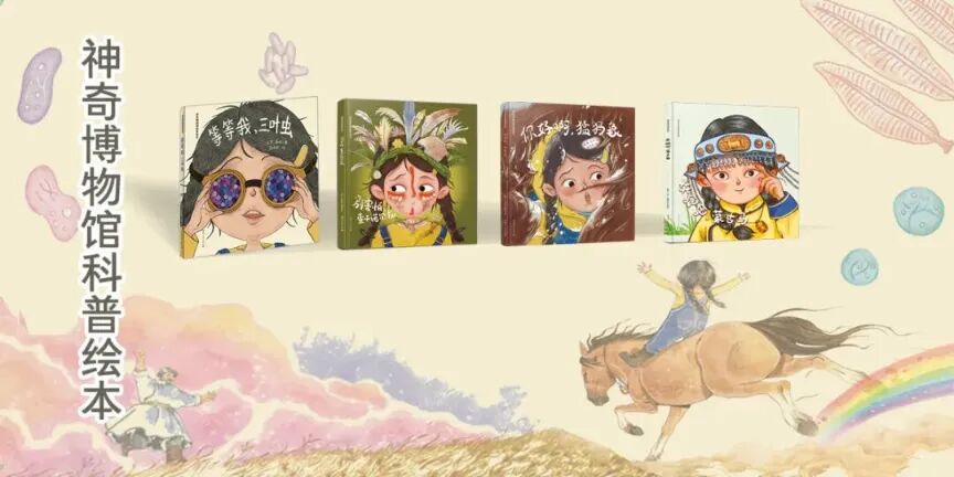 内蒙古出版集团所属内蒙古人民出版社《神奇博物馆》科普绘本丛书:《等等我,三叶虫》《别害怕,查干诺尔龙》《你好啊,猛犸象》《奔跑吧,蒙古马》(共4册)将亮相此次童书展。