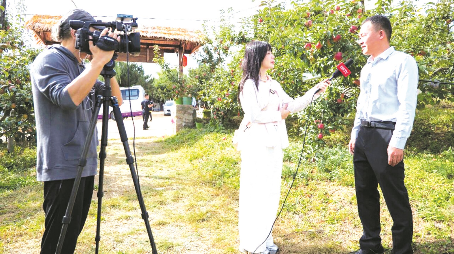 采访团的首站来到了小城子镇绿发种植专业合作社。金秋时节,果园里果香四溢,红润的苹果、饱满的寒红梨挂满枝头,呈现出一派丰收景象。